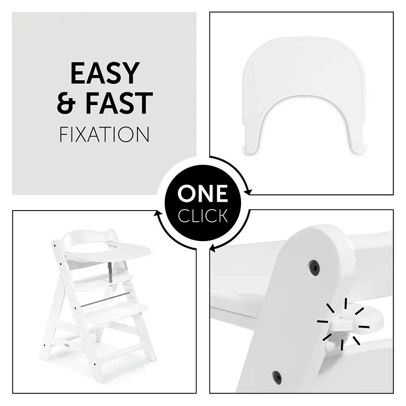 Столик легко устанавливается и защелкивается, без использования отдельных инструментов. Можно использовать как столик для еды или как игровую площадку в ожидании еды.