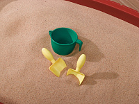 - в комплект входит набор аксессуаров: 2 совка, 2 грабли и ведерко