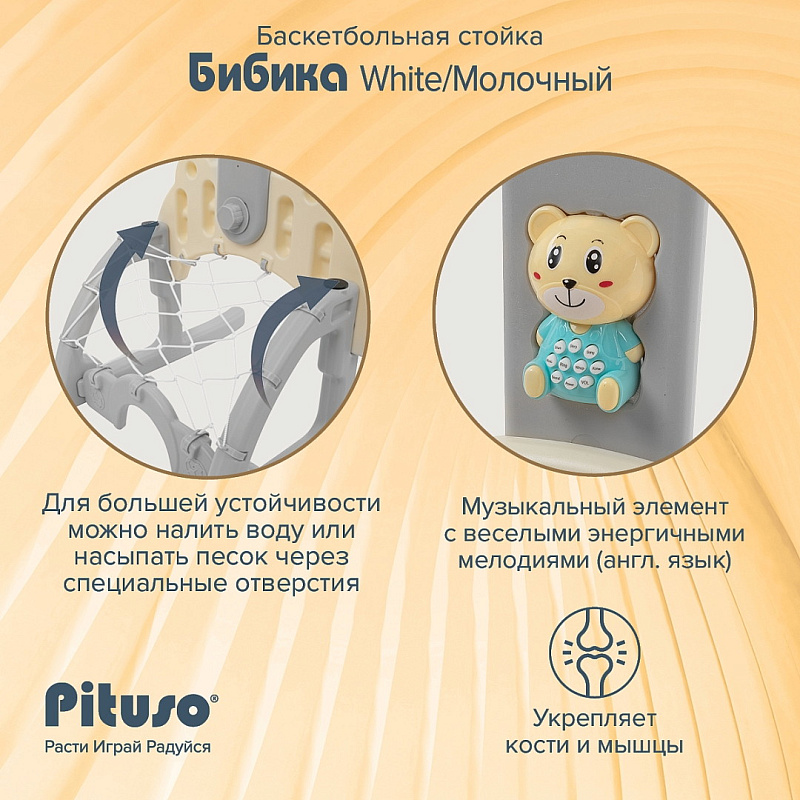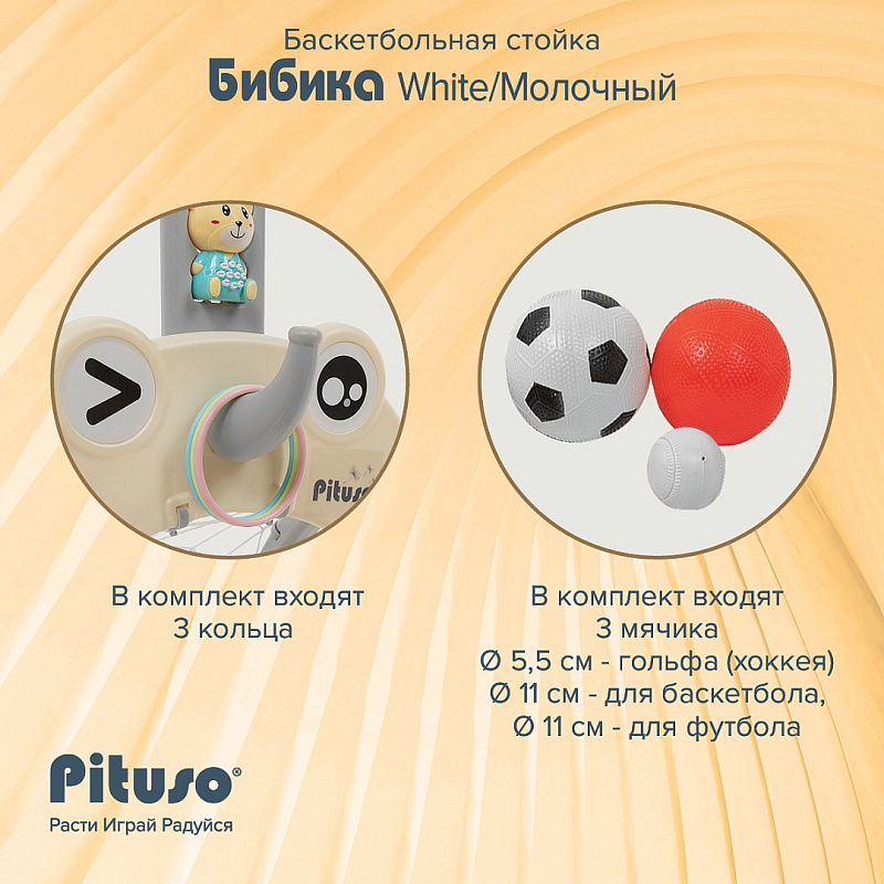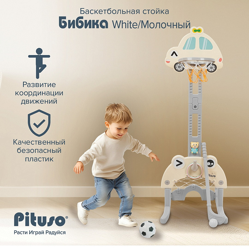 Стойка баскетбольная Pituso Бибика с кольцебросом,футб.воротами White/Молочный