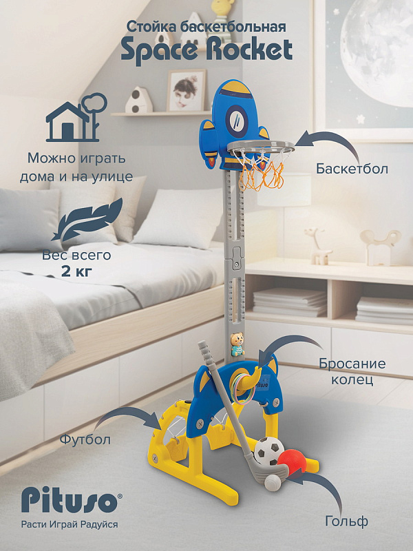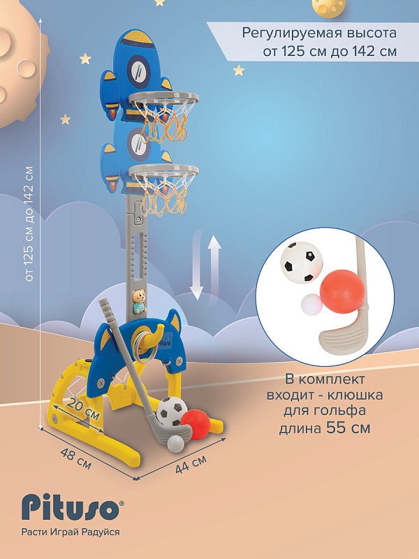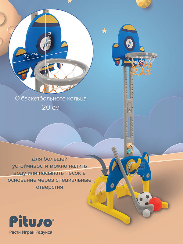 Стойка баскетбольная Pituso Space Rocket с кольцебросом,футб.воротами Blue/Синий