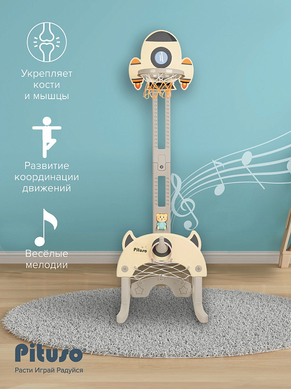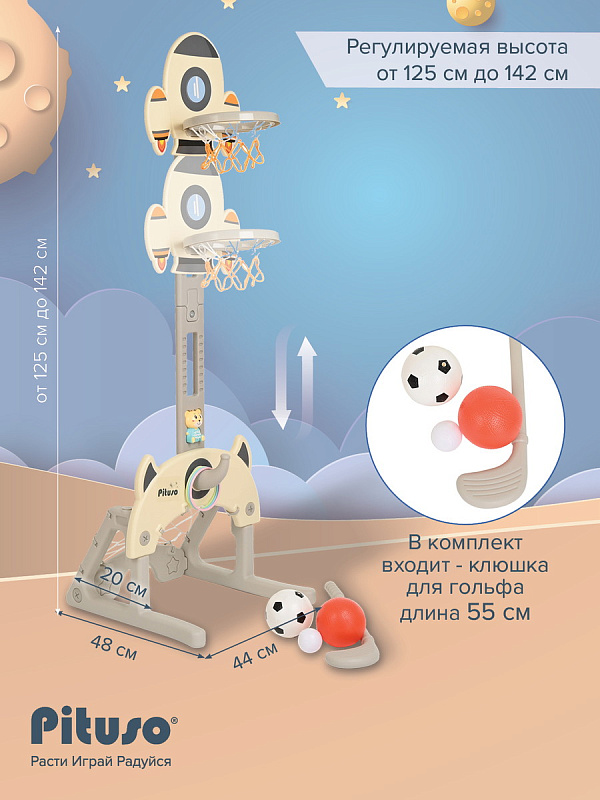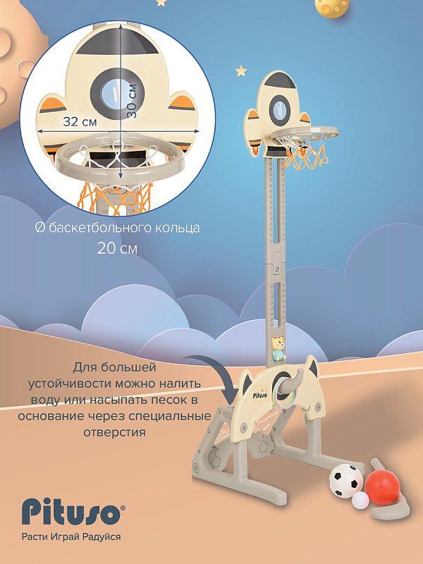 Стойка баскетбольная Pituso Space Rocket с кольцебросом,футб.воротами White/МолочныйНет оценокХарактеристики