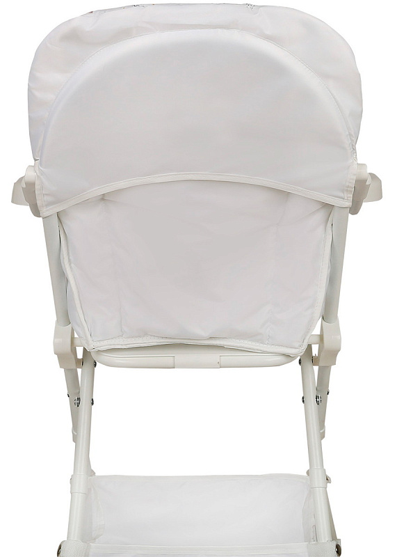 Большая гладкая столешница с двумя углублениями для стаканов и бортиком защитит пол от крошек и капель. Чтобы удобнее кормить малыша с ложечки или ближе придвинуть к общему столу, достаточно откинуть столик назад.