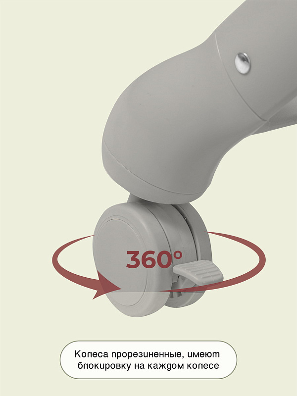 Колеса прорезиненные, крутятся на 360 градусов и имеют блокировку на каждом колесе.