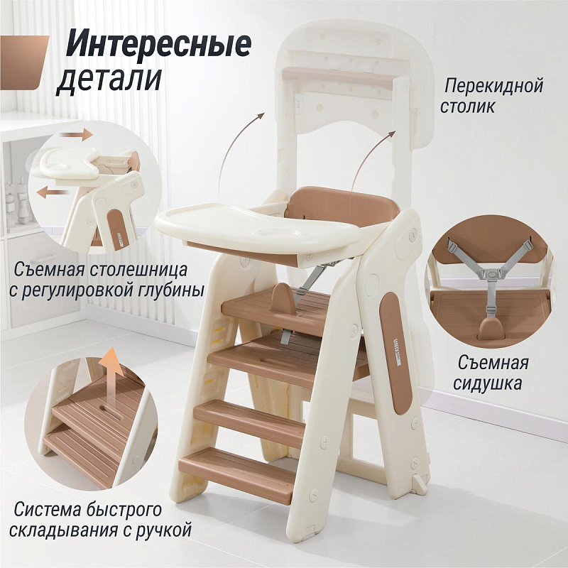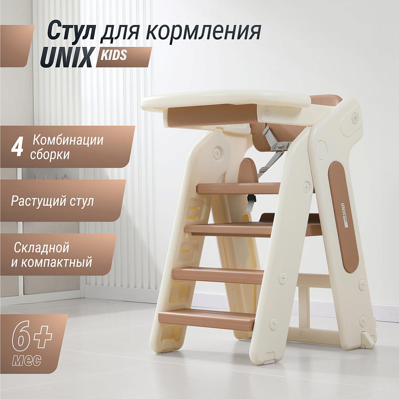 Стульчик UNIX Kids Cocoa разработан специально для безопасного и удобного кормления ребенка. Благодаря уникальной конструкции и 4-м вариантам сборки, он помогает приучить малыша к столу и освоить новые навыки, он станет незаменимым элементом интерьера, как для родителей, так и для деток.