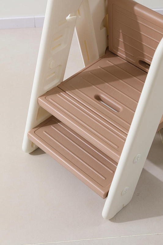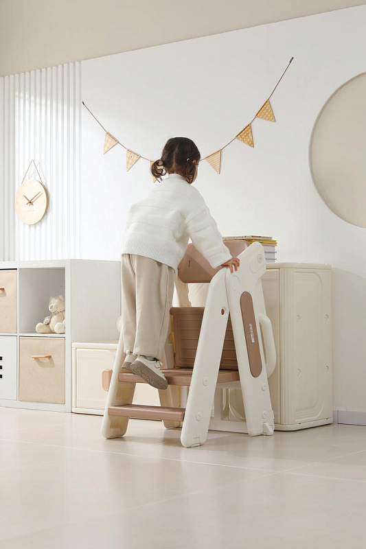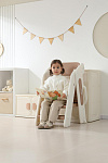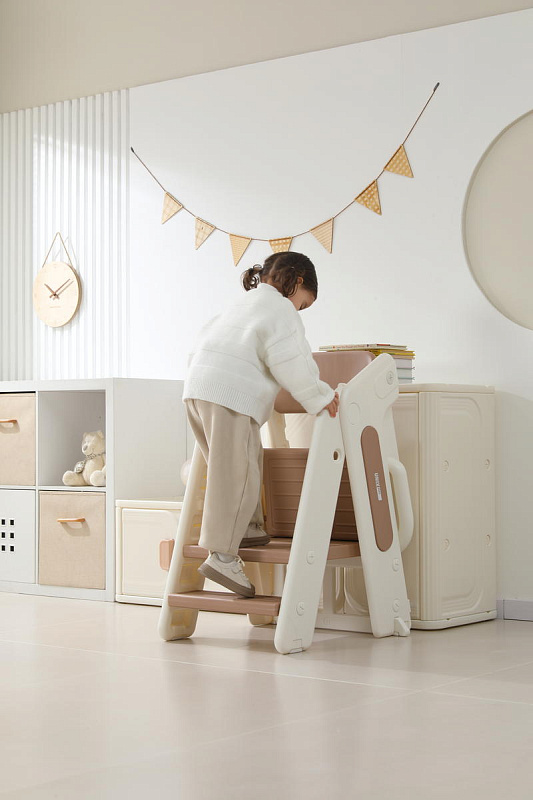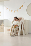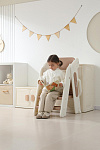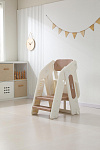 Третий уровень с 18 месяцев - стул-трансформер может с легкостью превратиться в лесенку или башню помощника. Малышу будет легко подниматься, чтобы положить или взять игрушки и книжки. Защитные перила и ограничительная спинка сделают подъем безопасным для маленьких пользователей. Лесенка очень устойчивая благодаря своей конструкции и противоскользящему покрытию ножек. Максимальная нагрузка до 50 кг.