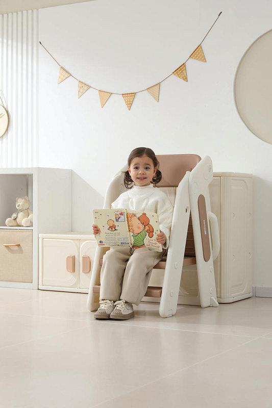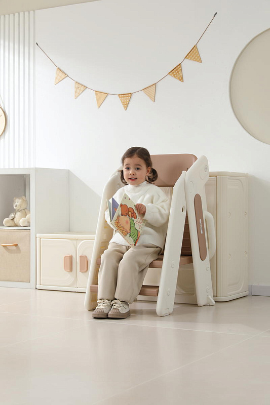 Этот стул не просто место для кормления. В считанные минуты он превращается в комплект для игр, позволяя малышу наслаждаться творческими занятиями, рисованием или конструированием. С таким универсальным решением вы сможете сэкономить место и деньги, не покупая отдельные предметы мебели.