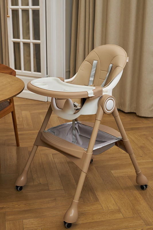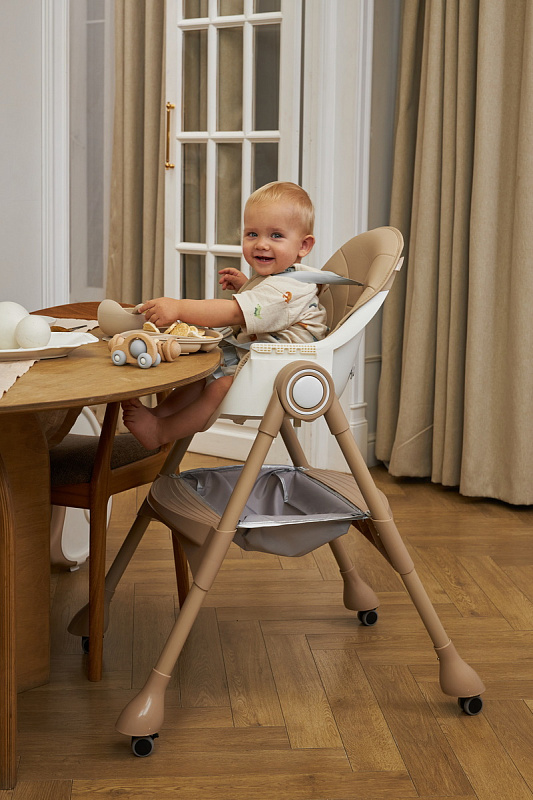 Устойчивость, закругленные углы стульчика для кормления на колесах исключают риск травмирования, создавая дополнительную защиту вашему малышу.