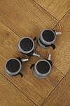 Мобильность в передвижении обеспечивается поворотными колесиками на 360 градусов, оснащенными функцией блокировки, что предотвращает случайное перемещение стула. Колеса выполнены таким образом, что не повреждают напольное покрытие, сохраняя эстетику интерьера.