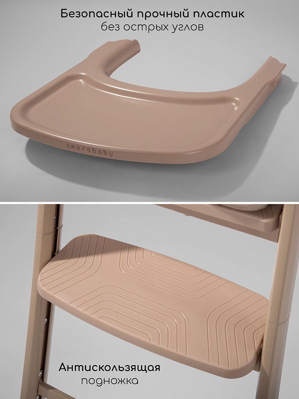 Стульчик для кормления AmaroBaby Easy Grow — удобство и безопасность на годы вперед! Растущий стул создан с заботой о малышах и родителях, объединяя надежность, комфорт и функциональность. Прочная конструкция гарантирует устойчивость. Стульчик детский предназначен для детей от 6 месяцев. Предусмотрена регулировка высоты сиденья и подножки, подстраиваясь под рост ребенка. Можно обеспечить ребенку правильную посадку за общим столом. Спинка поддерживает правильную осанку. В комплекте со стульчиком предусмотрен мягкий матрасик. Данная модель заменяет сразу несколько товаров: стульчик для кормления малыша и первый рабочий стул ребёнка. При правильной регулировке ребенку обеспечена удобная и эргономически правильная посадка в любом возрасте. Практичность в период прикорма и универсальность для творчества — всё это обеспечивает съемная столешница стульчика для кормления, облегчая родителям множество задач, от кормления до организации творческих занятий.