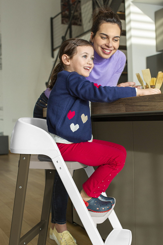 Благодаря дополнительным ножкам, которыми он оснащен, стульчик для кормления Crescendo Up также можно использовать с более высокими столами, например, на кухне.
