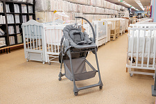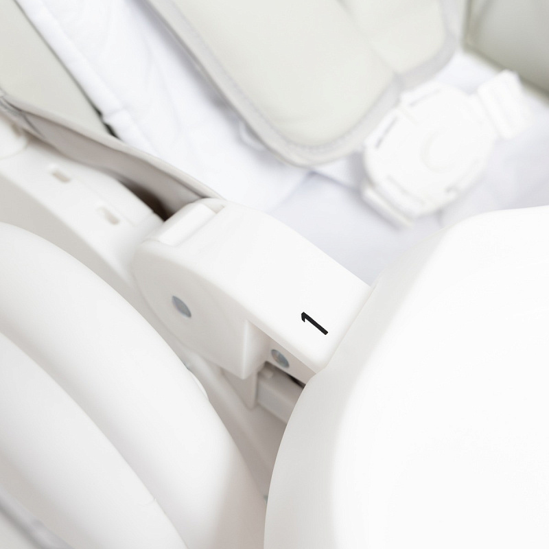 Когда малыш научится сидеть самостоятельно, можно пересаживать его в стульчик. Высота стульчика легко регулируется, что позволяет малышу сидеть с Вами за обеденным столом. Для безопасности используются 5-точечные ремни.