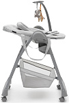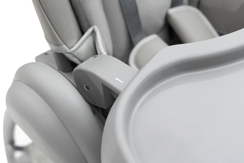 Когда малыш научится сидеть самостоятельно, можно пересаживать его в стульчик. Высота стульчика легко регулируется, что позволяет малышу сидеть с Вами за обеденным столом. Для безопасности используются 5-точечные ремни.
