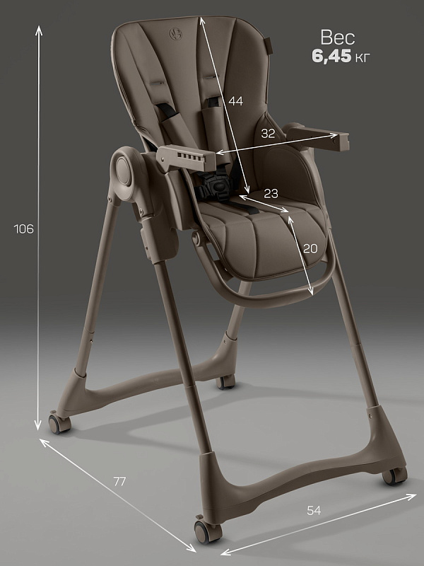 Легко передвигайте стульчик по комнате, не прилагая усилий, чтобы всегда быть рядом с малышом. Регулировка высоты позволит использовать детский стульчик за общим столом, а также адаптировать его под разные задачи.