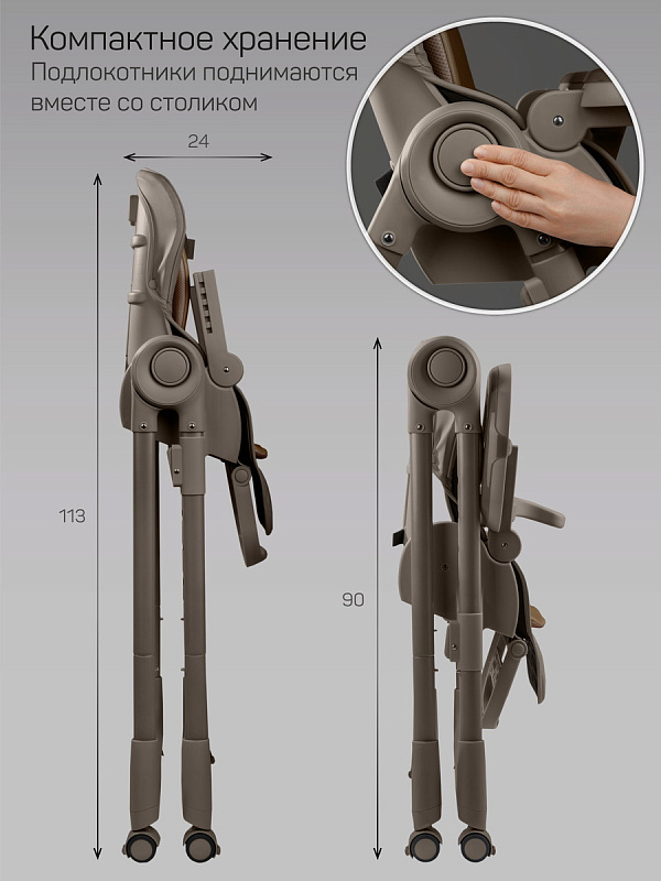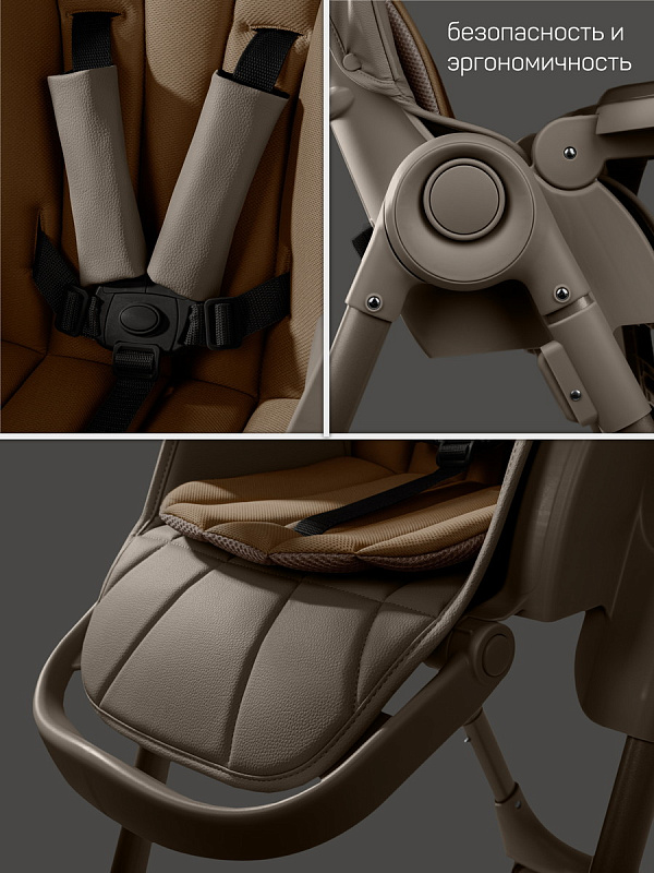 Мягкое сиденье из экокожи и специальный вкладыш обеспечивают комфорт даже во время длительного кормления.
