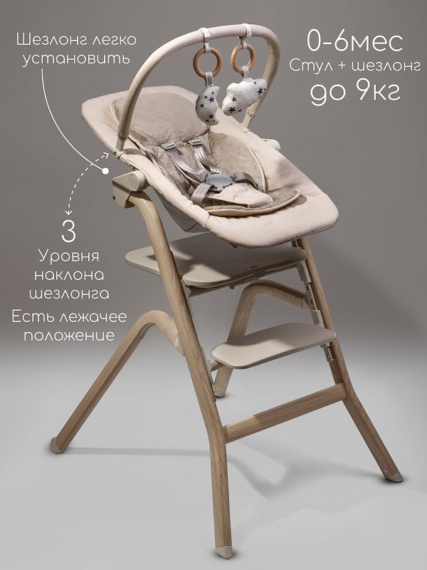 1. Безмятежный Шезлонг: С первых дней жизни стульчик превращается в уютный шезлонг, где малыш может спокойно отдыхать или играть под веселую дугу с игрушками. Мягкий матрасик окутывает его нежностью, а возможность регулировки угла наклона позволяет найти самое комфортное положение для сна и бодрствования. Безопасность обеспечивается надежными ремнями.