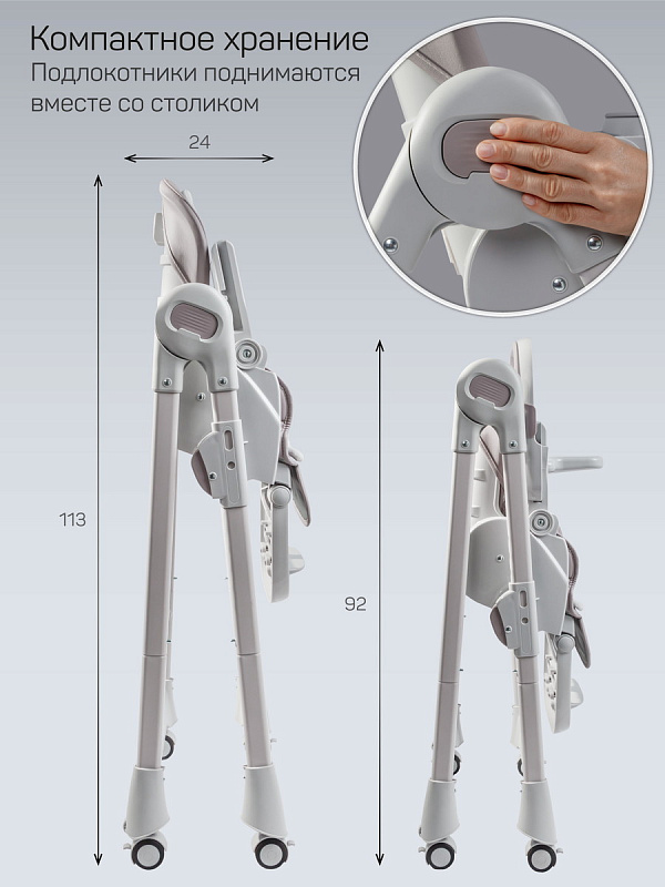 Стульчик для кормления AmaroBaby Yummy — это сочетание удобства и стиля для вашего малыша. Универсальный стульчик оснащён регулировкой по высоте для комфортного размещения за столом, сиденье плавно трансформируется в положение шезлонга, обеспечивая малышу удобный отдых. Подножка и столик также регулируются, подстраиваясь под потребности ребёнка. В комплект детского стула входит мягкий вкладыш для дополнительного комфорта. Чехол выполнен из практичной экокожи в cпокойных монохромных оттенках, что придаёт стульчику современный и стильный внешний вид. Детский стульчик можно легко передвигать по комнате за счет бесшумных поворотных колес. Стул для малыша не занимает много места на кухне, легко складывается, очень мало весит. Изготовлен из прочного качественного пластика, который безопасен для ребенка.