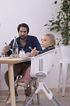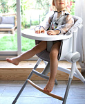 Стульчик регулируется по высоте в 6-ти уровнях и позволяет малышу полноценно присутствовать в жизни семьи: обедать за общим столом, играть и рисовать рядом с мамой, пока она готовит, смотреть первые мультики и тд.