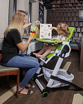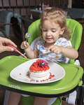 - Шесть положений высоты позволят поднять сиденье стульчика на уровень взрослого стола или опустить вниз на манер шезлонга