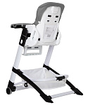 Стульчик для кормления произведен из высококачественного пластика. Имеет двойную столешницу, ремни безопасности, мягкий вкладыш для малышей. Спинка и подножка имеют несколько режимов регулировки. Колёса имеют резиновые накладки, которые защитят пол от повреждения.