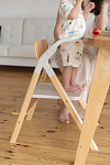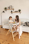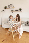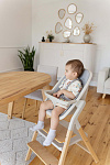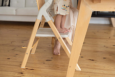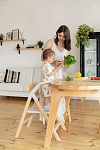 Третья функция – это **приставной стул**. В этом режиме Carrello Ergo CRL-16701 превращается в удобный стульчик для ребенка от 3-4 лет, способный выдерживать нагрузку до 110 кг. Деревянное сиденье имеет три позиции регулировки высоты, а также предусмотрена регулируемая опора для ножек. Это позволяет использовать стул длительное время, сопровождая ребенка в его взрослении. Размеры сиденья составляют 32х27 см, что достаточно комфортно для ребенка дошкольного и младшего школьного возраста.
