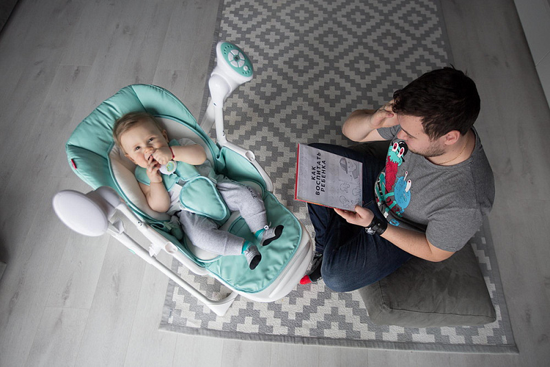 Оснащен регулировкой сидения по высоте, регулировкой спинки и регулировкой подножки, что позволяет стульчику ""расти"" вместе с малышом. Бесшумный маятниковый механизм позволяет укачивать ребенка в стульчике,