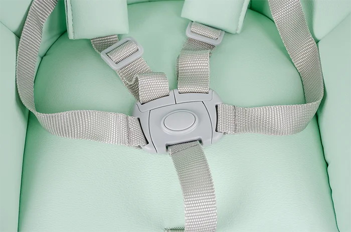 • Безопасные ремни и разделитель для ножек, обеспечивают дополнительную защиту и предотвращают скольжение малыша во время еды.