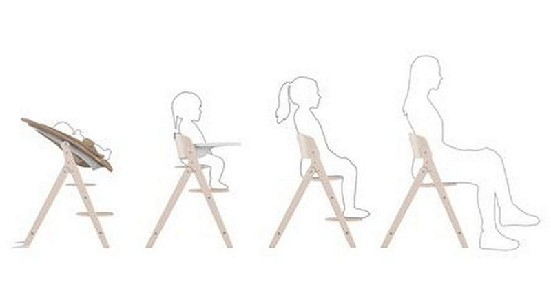Стульчик для кормления Click & Fold 4 в 1 от немецкого производителя Cybex может использоваться для детей от рождения до 6 месяцев в качестве шезлонга, от 6 месяцев до 3 лет (вес около 15 кг) в качестве стульчика с набором для младенцев, а от 3 лет – как отдельное кресло (стул), которое выдерживает вес до 120 кг.