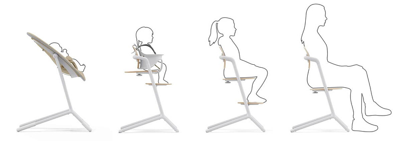 В наборе Lemo 4-в-1, вневременном решении для стульчика для кормления, есть все необходимое, чтобы усадить любого члена семьи от рождения до 99 лет. Начните с шезлонга (без подставки) после рождения ребенка. Как только ваш ребенок научится сидеть, входящий в комплект модуль к стульчику Cybex Lemo Baby Set обеспечит ему поддержку, когда это необходимо. А по мере взросления можно уже использовать как полноценный стул.