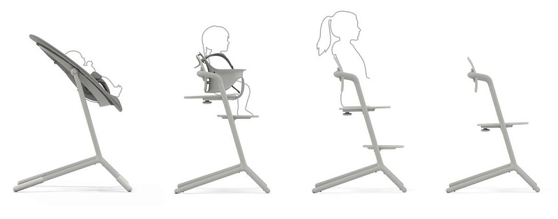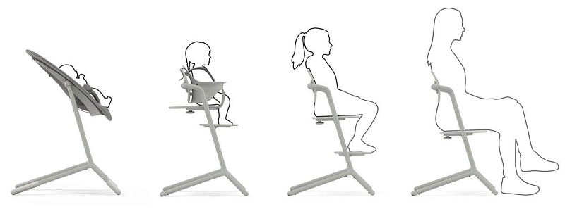 В наборе Lemo 4-в-1, вневременном решении для стульчика для кормления, есть все необходимое, чтобы усадить любого члена семьи от рождения до 99 лет. Начните с шезлонга (без подставки) после рождения ребенка. Как только ваш ребенок научится сидеть, входящий в комплект модуль к стульчику Cybex Lemo Baby Set обеспечит ему поддержку, когда это необходимо. А по мере взросления можно уже использовать как полноценный стул.