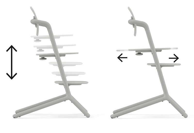 CYBEX предлагает следующие аксессуары: подставку-качалку LEMO, комфортную вставку LEMO, ремни безопасности LEMO и комплект обучающей башни LEMO. Цвета большинства аксессуаров совпадают с цветами стула Lemo Chair, за исключением ремня LEMO, который доступен только в светло-сером цвете.