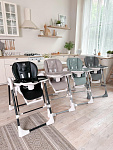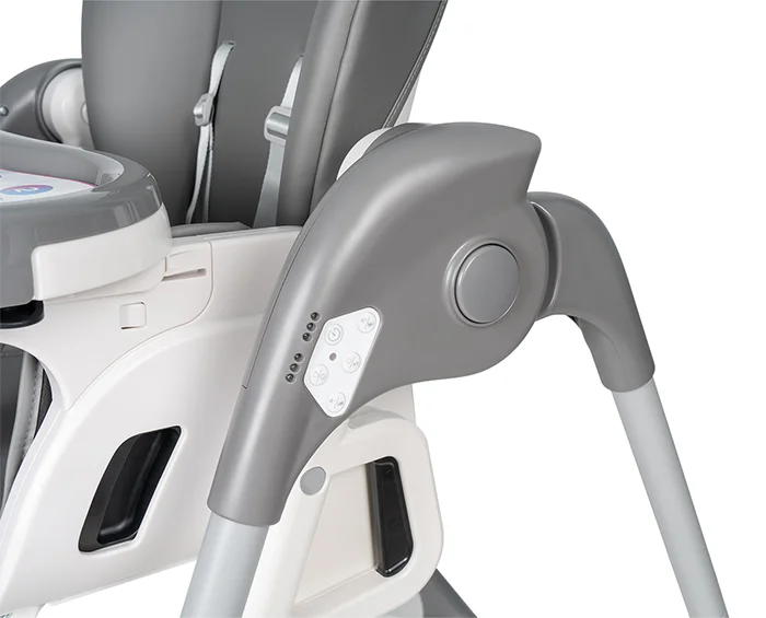 Стульчик легко подстроится, чтобы ребенок и мама во время кормления чувствовали себя удобно. Модель можно регулировать по высоте в 6 положениях, можно менять угол наклона подножки и положение сидения, регулировать удобное положение спинки. Имеет 3 скорости укачивания и 8 мелодий, чтобы любой малыш чувствовал себя уютно и мог быстрее успокоиться и уснуть. Таймер остановит укачивание через 15, 30 и 45 минут. Вы сможете контролировать движения люльки, выбирать любимую мелодию и регулировать громкость звучания как на панели стульчика, так и с телефона, установив приложение Baby Swing.