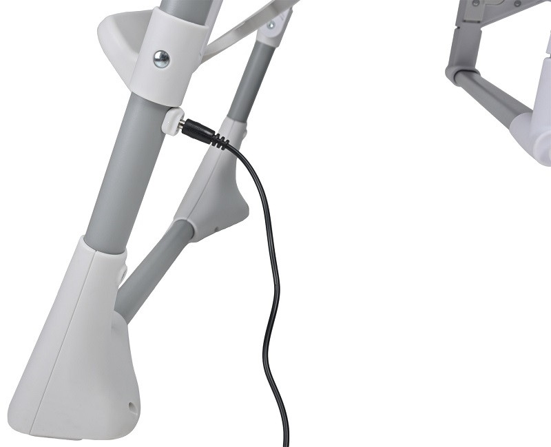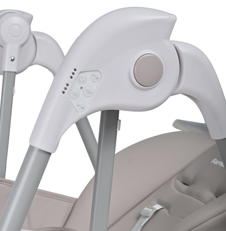 Стульчик легко подстроится, чтобы ребенок и мама во время кормления чувствовали себя удобно. Модель можно регулировать по высоте в 6 положениях, можно менять угол наклона подножки и положение сидения, регулировать удобное положение спинки. Имеет 3 скорости укачивания и 8 мелодий, чтобы любой малыш чувствовал себя уютно и мог быстрее успокоиться и уснуть. Таймер остановит укачивание через 15, 30 и 45 минут. Вы сможете контролировать движения люльки, выбирать любимую мелодию и регулировать громкость звучания как на панели стульчика, так и с телефона, установив приложение Baby Swing.