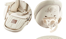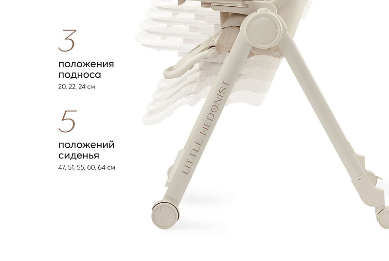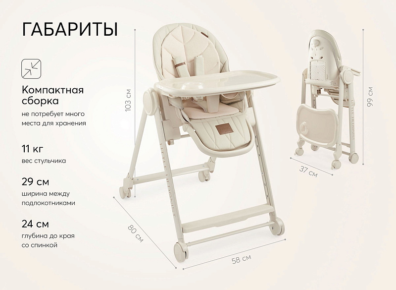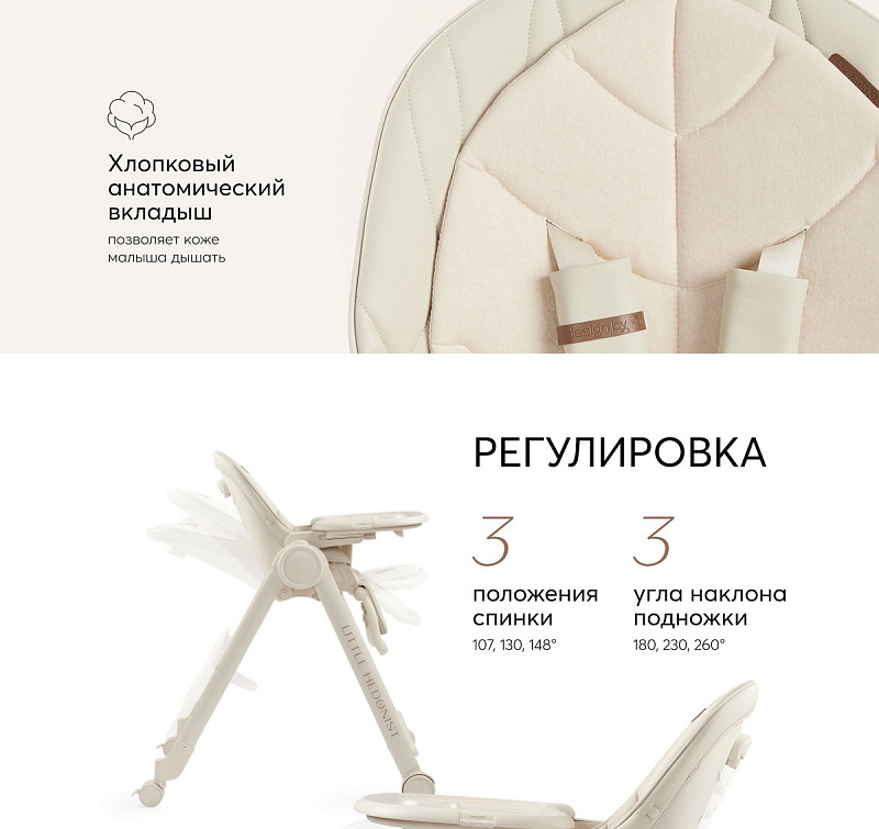 BERNY LUX — это продолжение линейки идеальных стульчиков для кормления серии BERNY. Практичный, удобный, стильный и развивающий -он регулируется по высоте сидения, подножки, ступенек и наклону спинки. Малышам будет комфортно в положении «шезлонг», а дети постарше сами заберутся в стульчик с помощью ступеньки. Цельнолитая металлическая рама без спаек и острых углов безопасна и выдерживает повышенную нагрузку до 25 кг. Задние поворотные колеса обеспечивают мобильность и оснащены тормозным механизмом, а передние – не поворачиваются, что добавляет стульчику устойчивости. Сидение из экокожи и мягкая вкладка из хлопка обеспечивают комфорт малышу. В карман на обратной стороне спинки можно положить игрушки или средства гигиены. BERNY LUX впишется в любой интерьер – лаконичный дизайн рамы и чехлов выполнен с учетом современных тенденций.