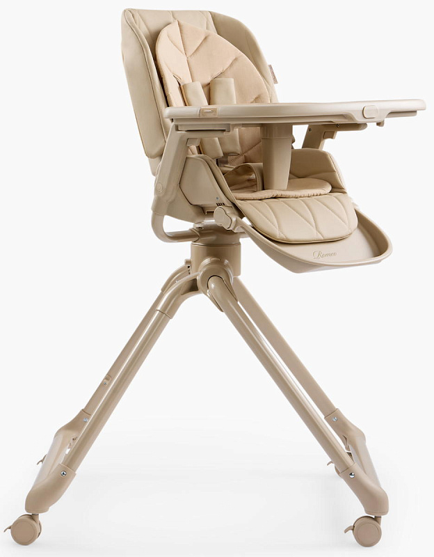 Стульчик для кормления ROMEO — это удобный и стильный стул для кормления ребенка, который можно использовать как стульчик шезлонг и как растущий стул для детей, благодаря 2 уровням высоты спинки. Стул для кормления детский подходит для мальчиков и девочек - спинка имеет 3 угла наклона, З угла наклона подножки. Поворотное сиденье на 360° градусов позволяет легко менять положение ребенка -- к столу или к родителю. Детский стульчик имеет съёмные столик и поднос, а также мягкий вкладыш-матрасик из хлопка. Съёмный поднос со столиком можно легко мыть после приема пищи. Столик снимается одним движением и компактно крепится на задние ножки. Стул детский для кормления ROMEO легко складывается, компактен при хранении.