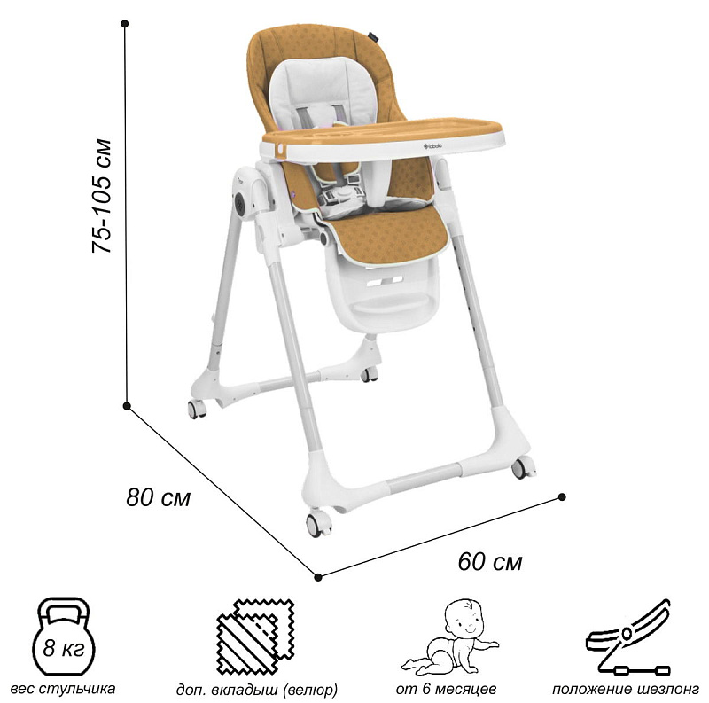 Labala TRON обладает более, чем всеми необходимыми регулировками, которые позволят Вам и малышу в полной мере насладиться временем, проведенным вместе за завтраком, обедом или ужином, не испытывая какого-либо дискомфорта при этом. Легко перемещается по квартире благодаря колесам на всех 4 ножках, которые оснащены противооткатными стопорами.