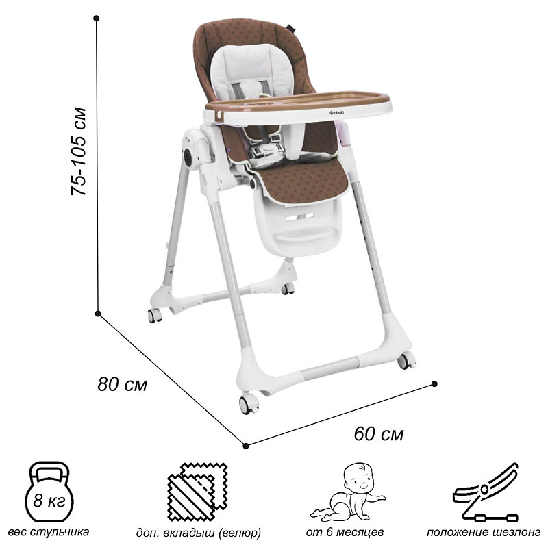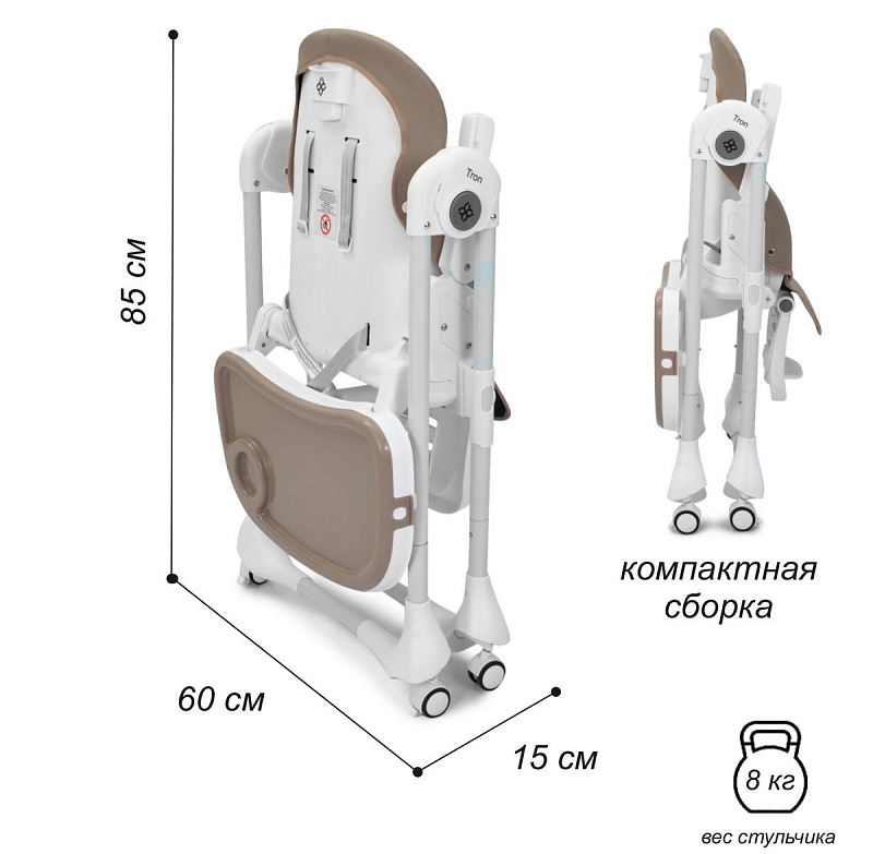 Labala TRON обладает более, чем всеми необходимыми регулировками, которые позволят Вам и малышу в полной мере насладиться временем, проведенным вместе за завтраком, обедом или ужином, не испытывая какого-либо дискомфорта при этом. Легко перемещается по квартире благодаря колесам на всех 4 ножках, которые оснащены противооткатными стопорами.