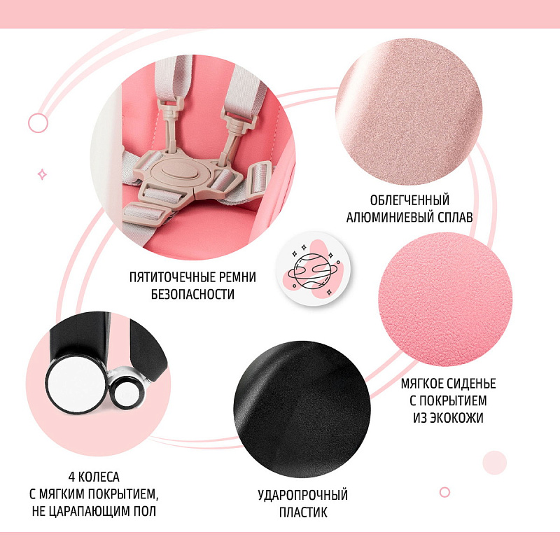 Стульчик для кормления Nuovita Orbita Rosa pallido, Rosa/Бледно-розовый, РозовыйНет оценокХарактеристики