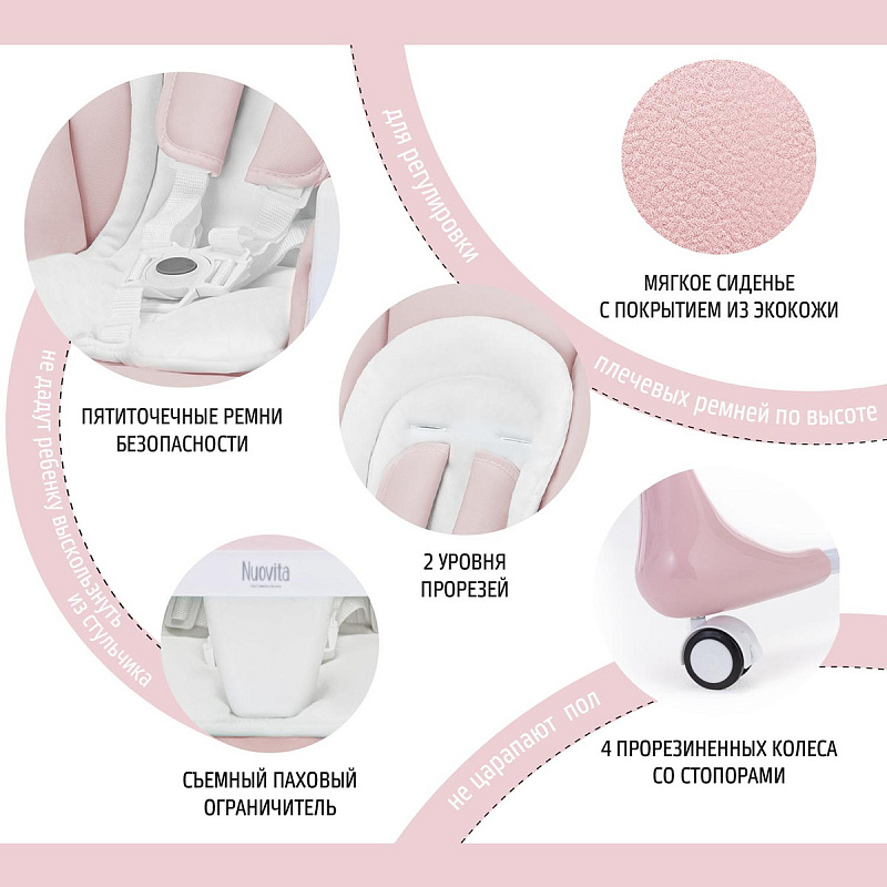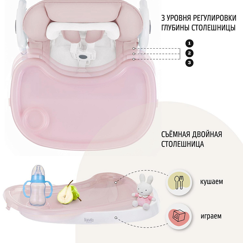 Стульчик для кормления Nuovita Pratico Rosa, Bianco/Розовый, Белый