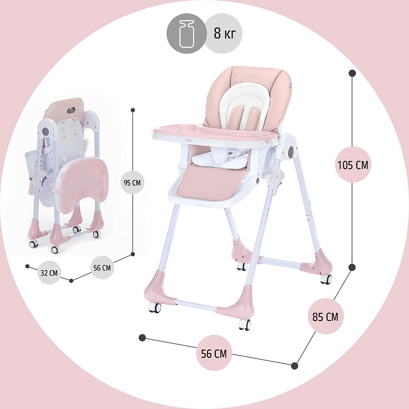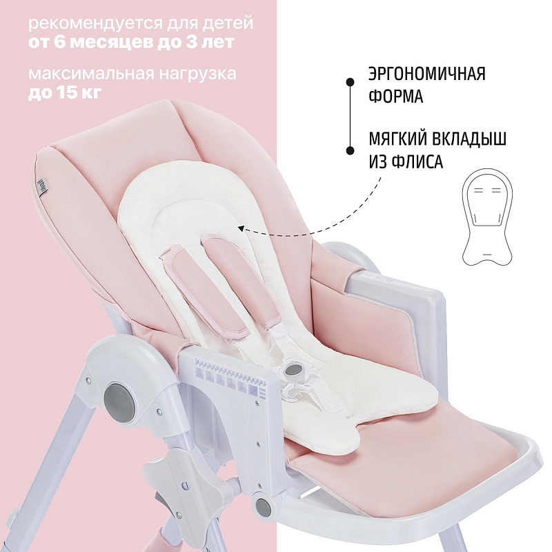 Стульчик для кормления с эргономичной конструкцией и всеми необходимыми функциями. Регулировка не требует каких-либо инструментов. Есть возможность разместить ребёнка за одним столом со взрослыми. Сиденье с анатомически правильной конструкцией обеспечит комфортное положение малыша. Чехол сиденья выполнен из экокожи с дышащими свойствами, легко моется. Изделие дополнено четырьмя прорезиненными колёсиками с возможностью блокировки.