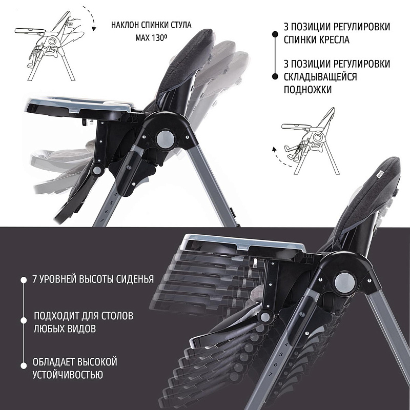 - регулировка высоты стульчика осуществляется специальным механизмом с удобными кнопками
