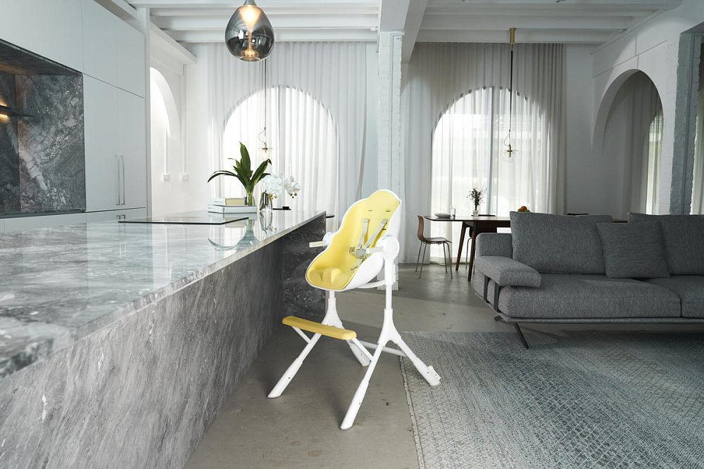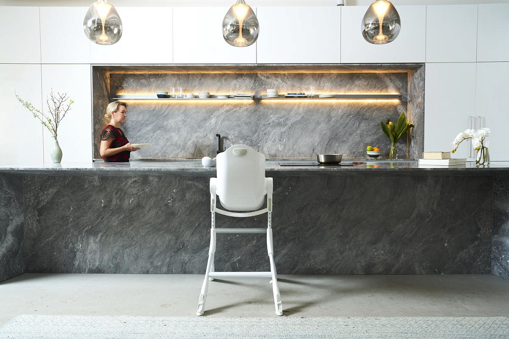 Столик снимается одним движением, позволяя максимально придвинуть стульчик к общему столу;