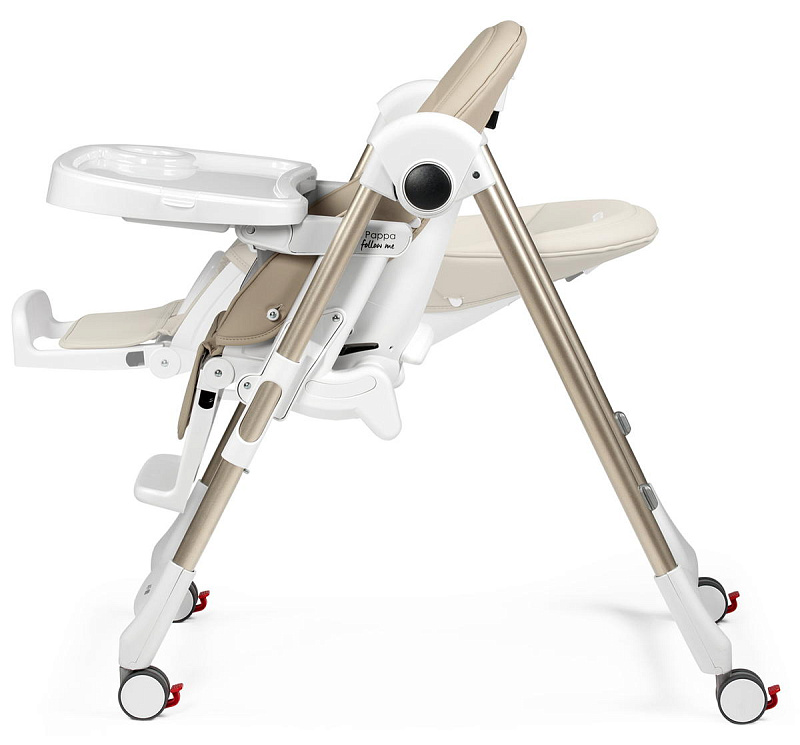 Стульчик легко чистить благодаря съемному столику с подносом, который можно мыть в посудомоечной машине. Обивка представлена в трех вариантах: экокожа, поливинилхлорид и инновационный материал Wonder, который отличается особой прочностью и легкостью в уходе. Стульчик компактно складывается книжкой и в сложенном виде устойчиво стоит без опоры, что облегчает его хранение.