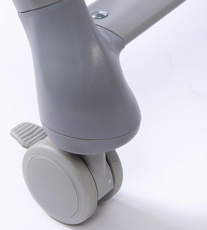 Колеса прорезиненные, крутятся на 360 градусов и имеют блокировку на каждом колесе.