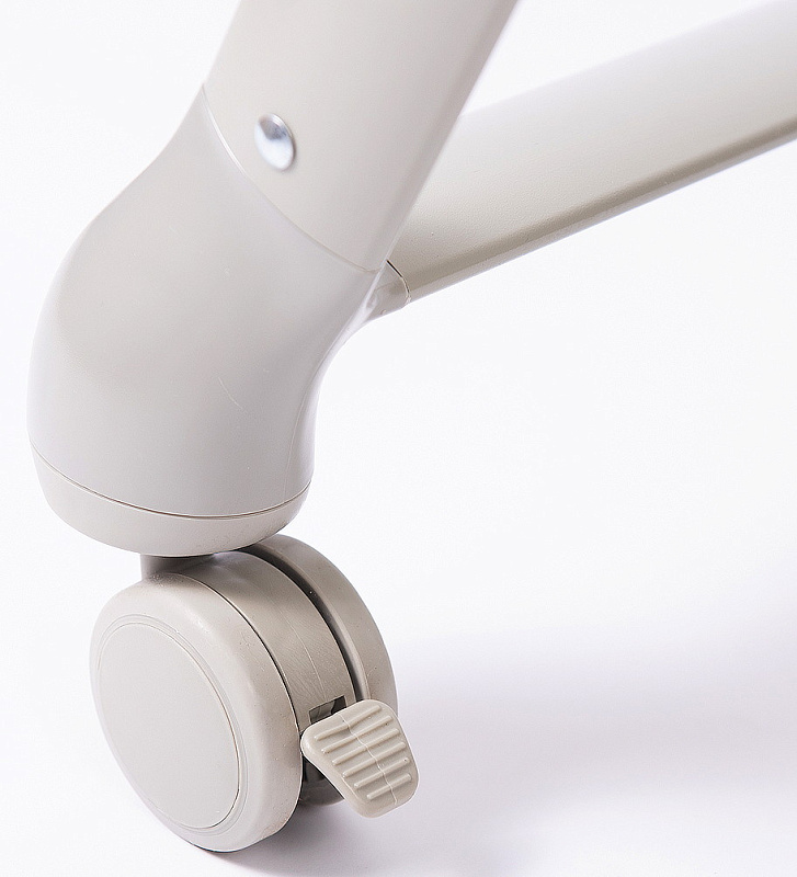Колеса прорезиненные, крутятся на 360 градусов и имеют блокировку на каждом колесе.