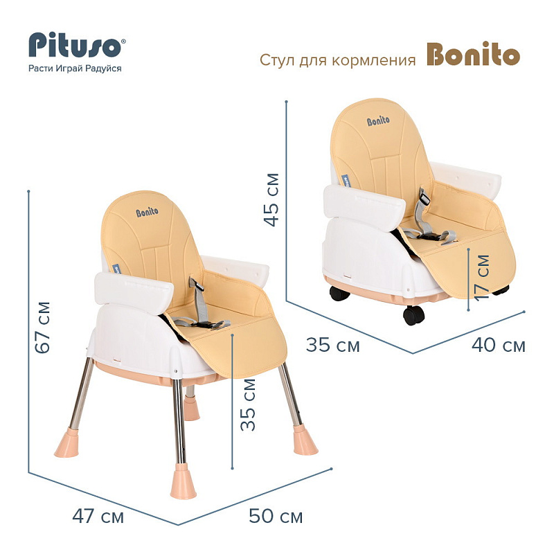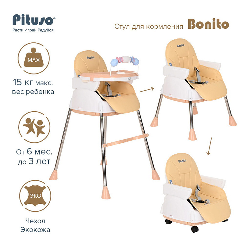 Стульчик для кормления Pituso Bonito для детей от 6 месяцев до 3 лет. Стульчик имеет 3 конфигурации: