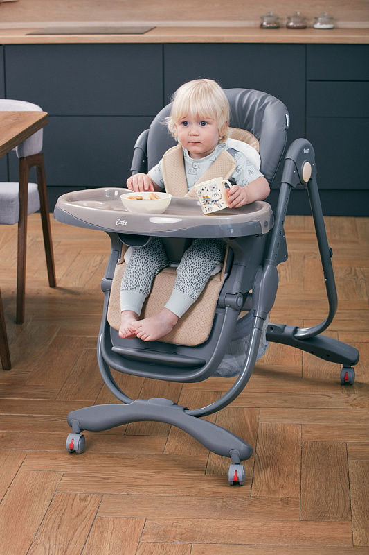 Для удобства хранения, столешницу можно установить на задней опоре стульчика