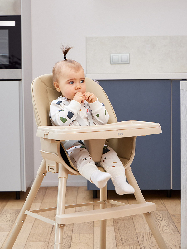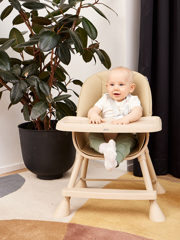 Детский стульчик-трансформер для кормления 3 в 1 Rant Juicy покорит вас: возможностью трансформации из классического стульчика в стульчик с укороченными ножками и в табурет; важным набором регулировок; двойной столешницей; антицарапающим покрытием ножек; чехлом из практичной и роскошной экокожи.