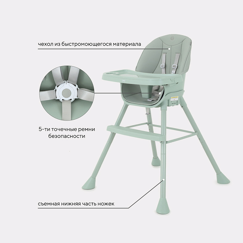 - 5-точечные, регулируемые ремни безопасности надежно зафиксируют кроху во время трапезы