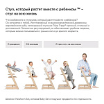 - Когда вашему малышу исполнится 6 месяцев или он сможет сидеть без посторонней помощи, вы легко сможете превратить свой стульчик в детский стульчик с помощью аксессуаров Tripp Trapp®, которые продаются отдельно.