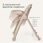 1. Индивидуальные настройки: 5 уровней высоты сиденья, 3 положения спинки (вплоть до режима «шезлонг») и 3 положения подножки. Вы создадите идеальную позу для кормления, игр или отдыха.
